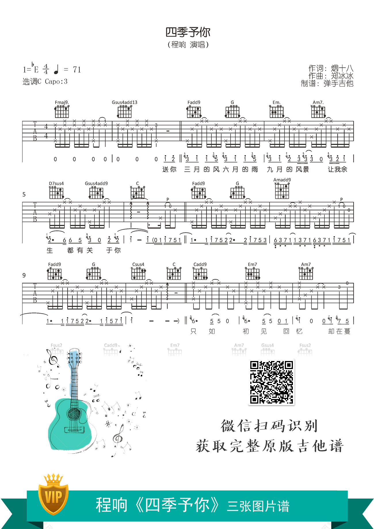 - 四季予你吉他谱_程响_C调弹唱谱_原版六线谱