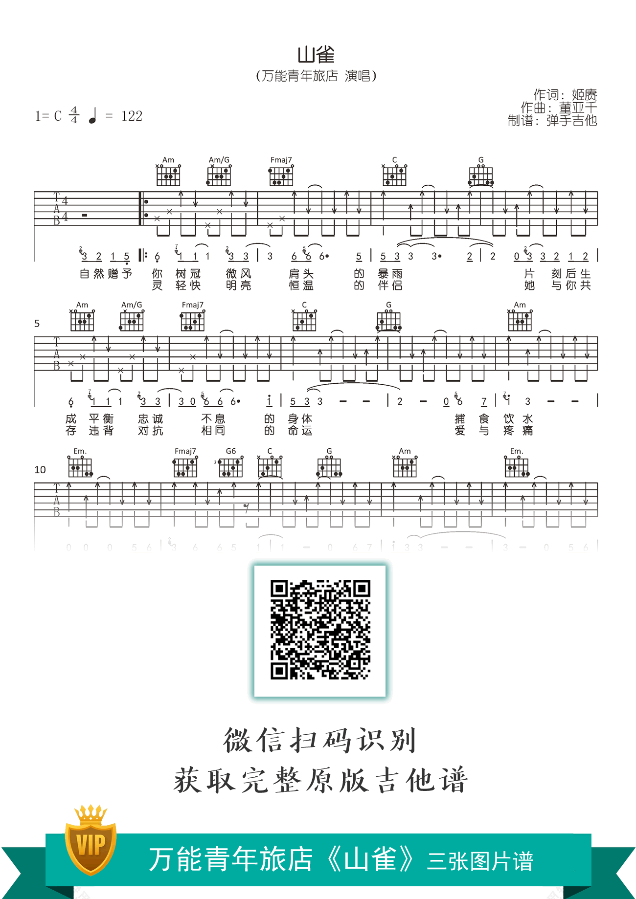 - 山雀吉他谱_万能青年旅店_C调原版_弹唱六线谱