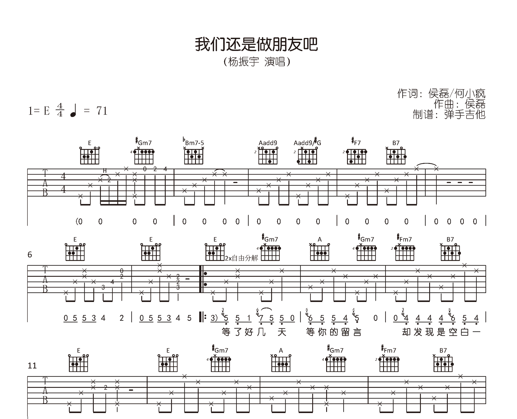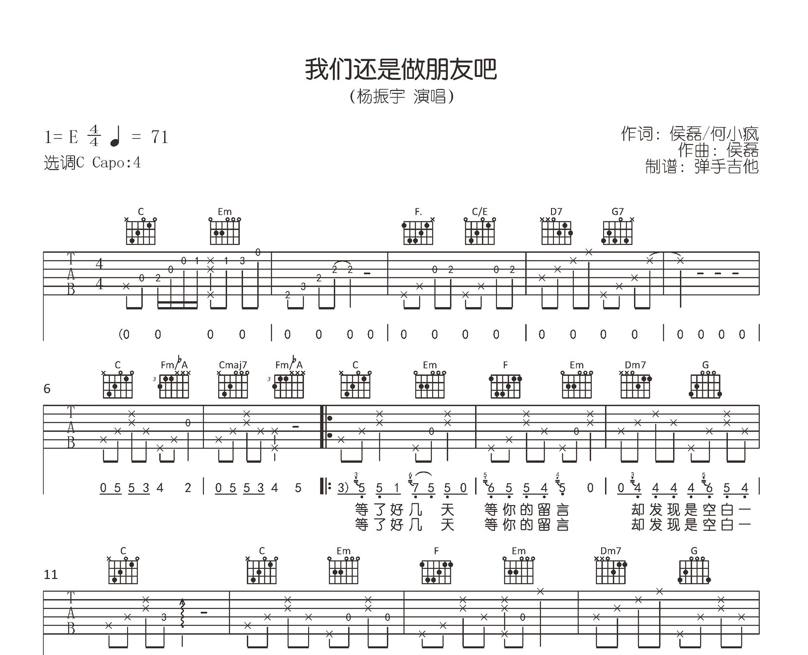 - 我们还是做朋友吧吉他谱_《伍六七》插曲_C调+E调_原版六线谱