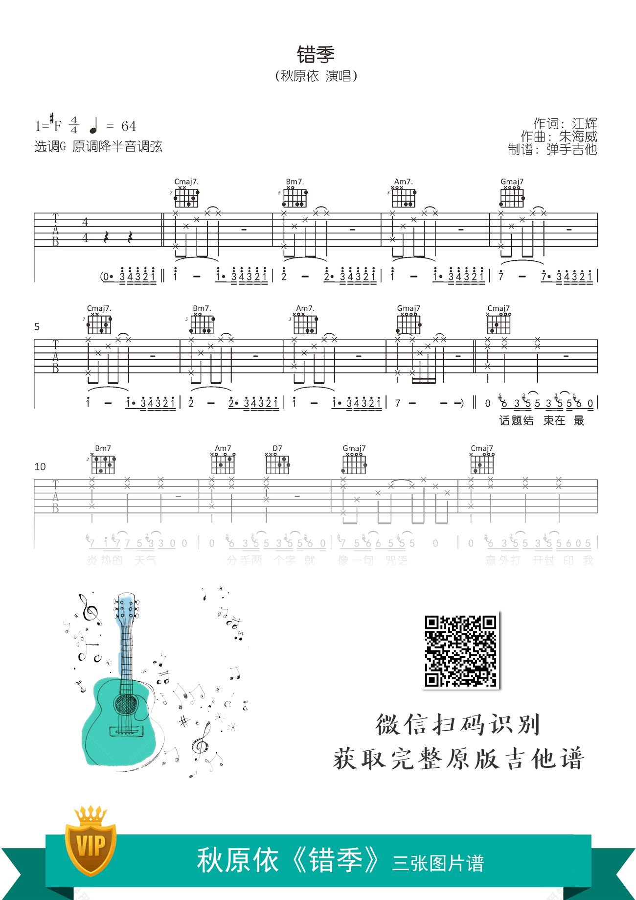 - 错季吉他谱_秋原依_G调原版_弹唱六线谱