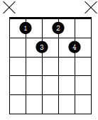 举个例子,假设现在给到一个Ⅰ级主和弦D(根音在五弦5品的封闭指法),同样先找它的Ⅳ级与Ⅴ级和弦,这时要将之前音程的指法关系倒过来看,纯五度指法倒过来看即可找到位于六弦3品的纯四度音符,在这个位置按出大三和弦即可得到D调Ⅳ级和弦(G和弦),纯四度指法倒过来看即可找到六弦5品的纯五度音符,在这个位置按出大三和弦即可得到D调Ⅴ级和弦(A和弦)。 接下来以同样的方式即可找到Ⅱ、Ⅲ、Ⅵ级和弦。至于Ⅶ级,同样主音位置向后移动1品即可得到Ⅶ级位置,提供根音在五弦的半减七和弦的指法图。