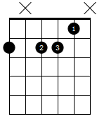 那么Ⅶ级呢?Ⅶ级最简单,主音位置向后移动1品即可得到Ⅶ级位置,可能有朋友不了解根音在六弦的半减七和弦按法,请看下图,推荐用大拇指按住六弦,注意只能弹奏按到的琴弦。