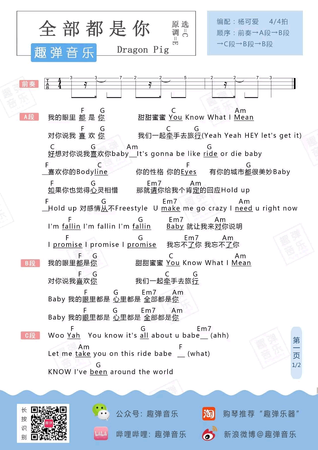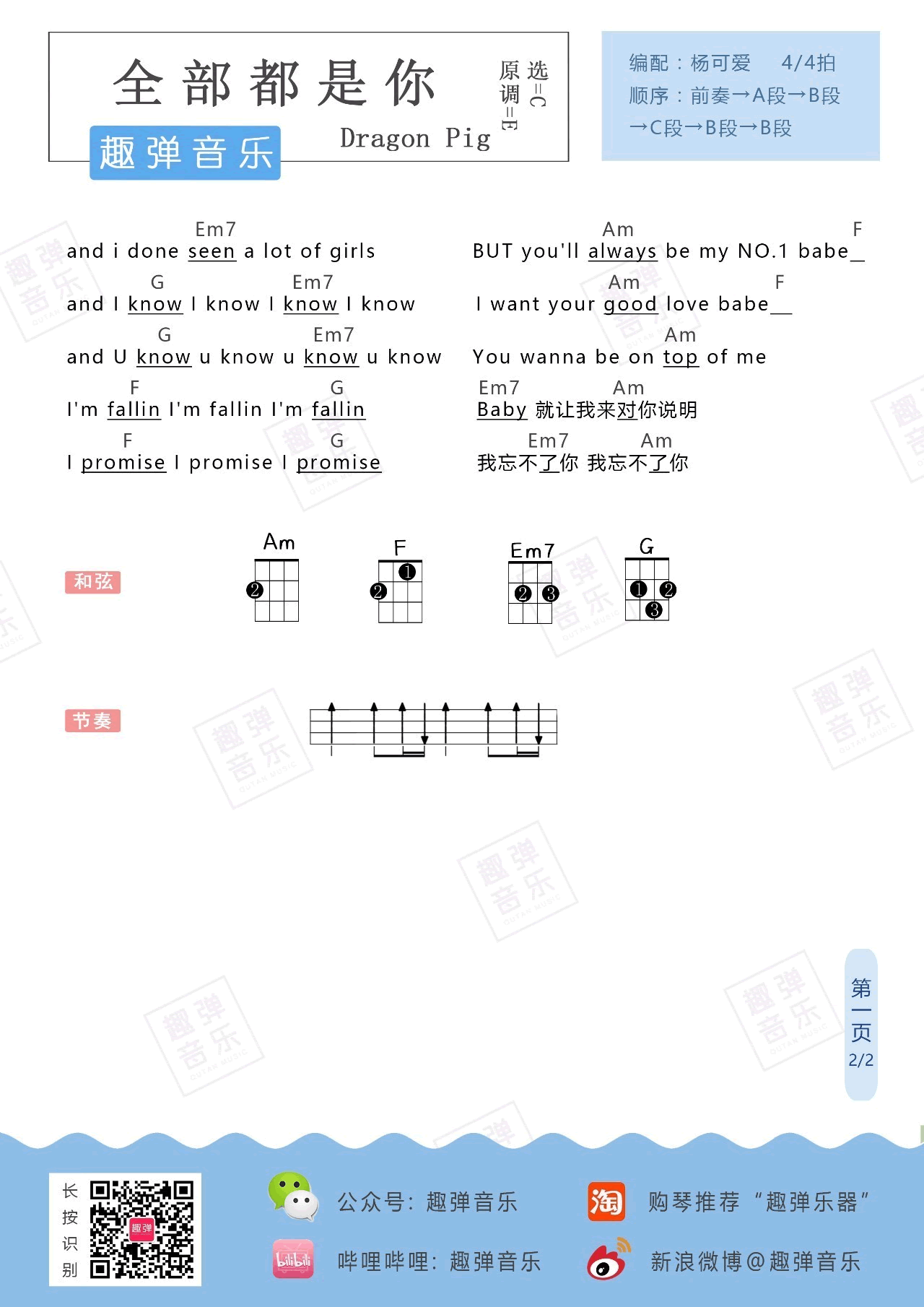 全部都是你ukulele谱 Dragon Pig 尤克里里谱