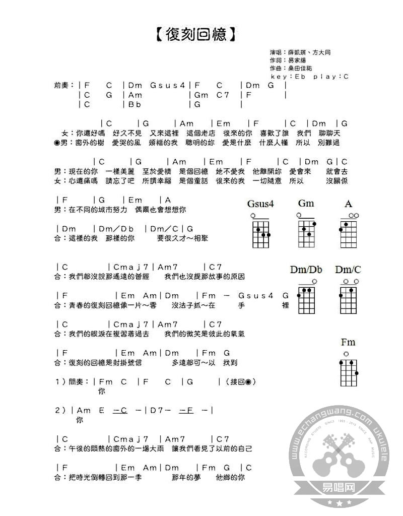 复刻回忆ukulele谱_方大同薛凯琪_ukulele谱 曲谱类型: 弹唱伴奏谱 编配来源: 网络 演唱(奏):方大同,薛凱琪, 发布于:2016-03-08 点击: 次 曲谱归类: 方大同 复刻记忆尤克里里谱,方大同薛凯琪演唱,原调Eb选调C,复刻记忆ukulele谱。 * 网站内容自网络收集整理而来,仅供爱好者学习交流,版权归其原作者,若侵犯了您的合法权利,请与我们联系,我们将立刻处理。 上一篇:没有了 下一篇:花心ukulele谱_周华健_花心尤克里里谱 优客张SIR 心动小U 马叔叔教乌克丽丽 鱼仔超人 玛佧音乐 四弦公社 小Sa神 ukulele狂热 强尼的乌克丽丽 摩卡音乐 尤克宝贝 小鱼吉他屋 弹吧小吉他 相关吉他谱