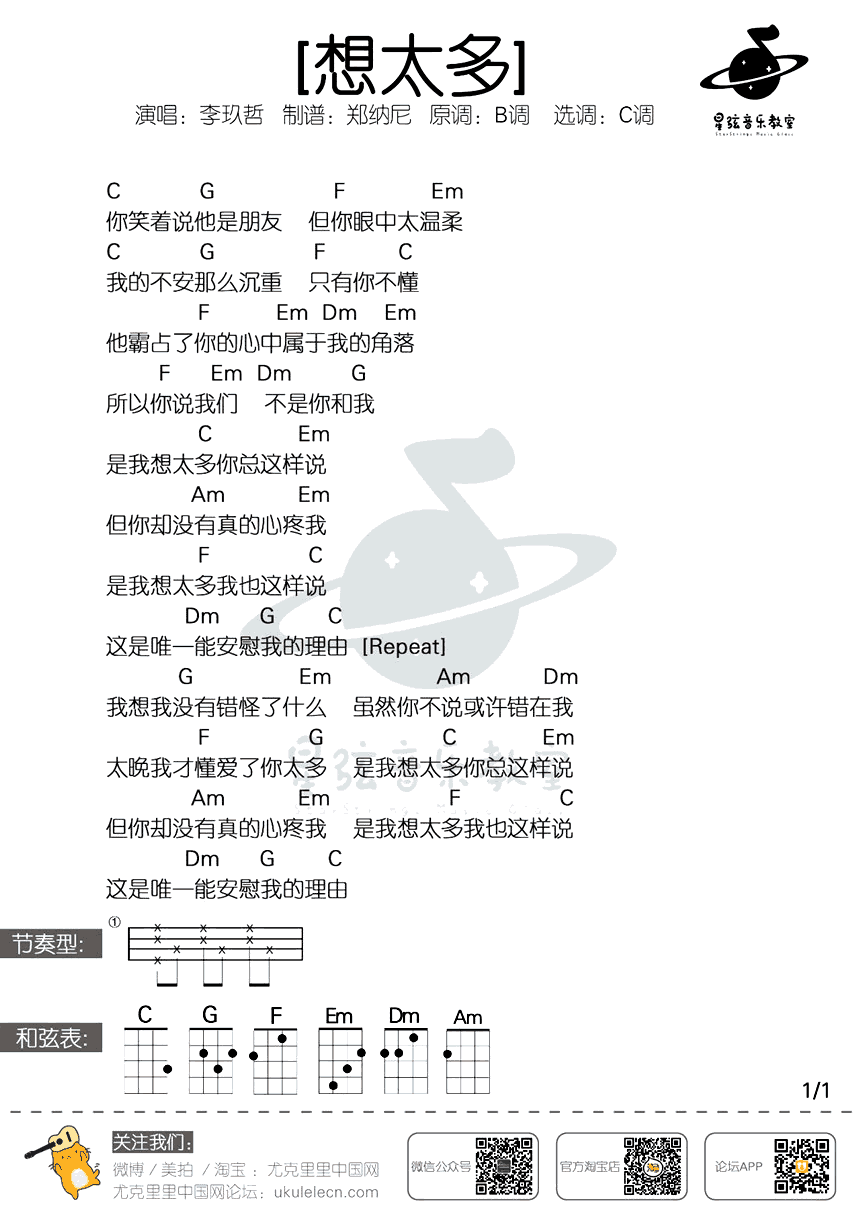 - 张玉华《原谅》ukulele谱 尤克里里谱 和弦图片谱