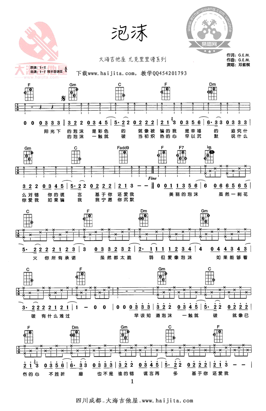 - 甜蜜蜜尤克里里谱 邓丽君《甜蜜蜜》ukulele谱