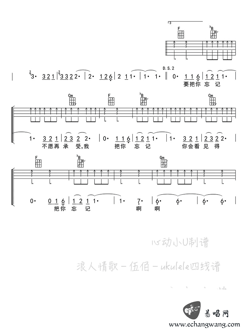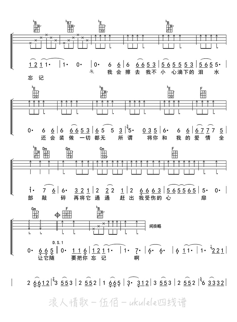 浪人情歌ukulele谱 伍佰《浪人情歌》尤克里里谱 图片谱 曲谱类型: 弹唱伴奏谱 编配来源: 心动小U 演唱(奏):伍佰 发布于:2017-08-21 点击: 次 曲谱归类: 伍佰 浪人情歌ukulele谱,伍佰的一首经典老歌,浪人情歌尤克里里弹唱谱,四线图片谱共三张。伍佰的成名曲,歌声直抒胸臆的表达出男人的浪漫,略带颓废、沧桑的歌声唱出了爱情的无奈和辛酸。浪人情歌乌克丽丽谱,心动扒谱,易唱网整理上传。 * 网站内容自网络收集整理而来,仅供爱好者学习交流,版权归其原作者,若侵犯了您的合法权利,请与我们联系,我们将立刻处理。 上一篇:依然爱你尤克里里谱_王力宏_带间奏ukulele谱 下一篇:曾经的你尤克里里谱 许巍 ukulele谱 弹唱谱 优客张SIR 心动小U 马叔叔教乌克丽丽 鱼仔超人 玛佧音乐 四弦公社 小Sa神 ukulele狂热 强尼的乌克丽丽 摩卡音乐 尤克宝贝 小鱼吉他屋 弹吧小吉他 相关吉他谱 浪人情歌吉他谱_伍佰_浪人情歌和弦弹唱谱 突然的自我尤克里里谱 伍佰 ukulele谱